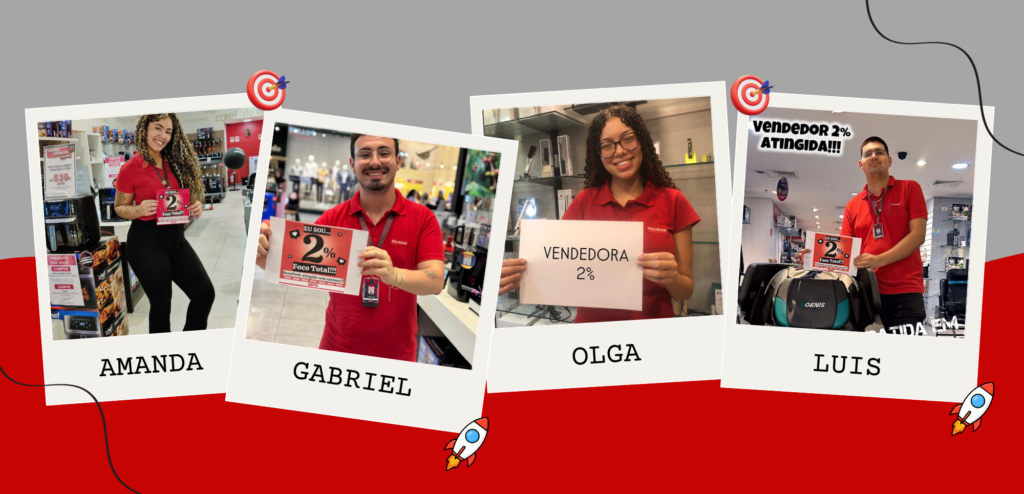 Parabéns aos vendedores que já atingiram a meta de 2%! Esse resultado mostra dedicação, constância e uma abordagem bem feita no dia a dia da loja. É o reflexo de quem aproveita cada oportunidade e faz a diferença no E esse é só o começo! 💪
