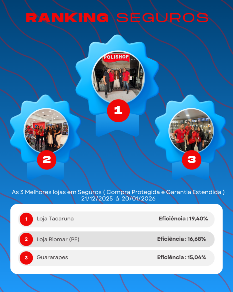 Parabenizamos as lojas que se destacaram na oferta de seguros, mostrando uma abordagem clara, consultiva e alinhada às necessidades do cliente. Esse cuidado reforça o relacionamento, gera credibilidade e valoriza ainda mais o atendimento em loja.
