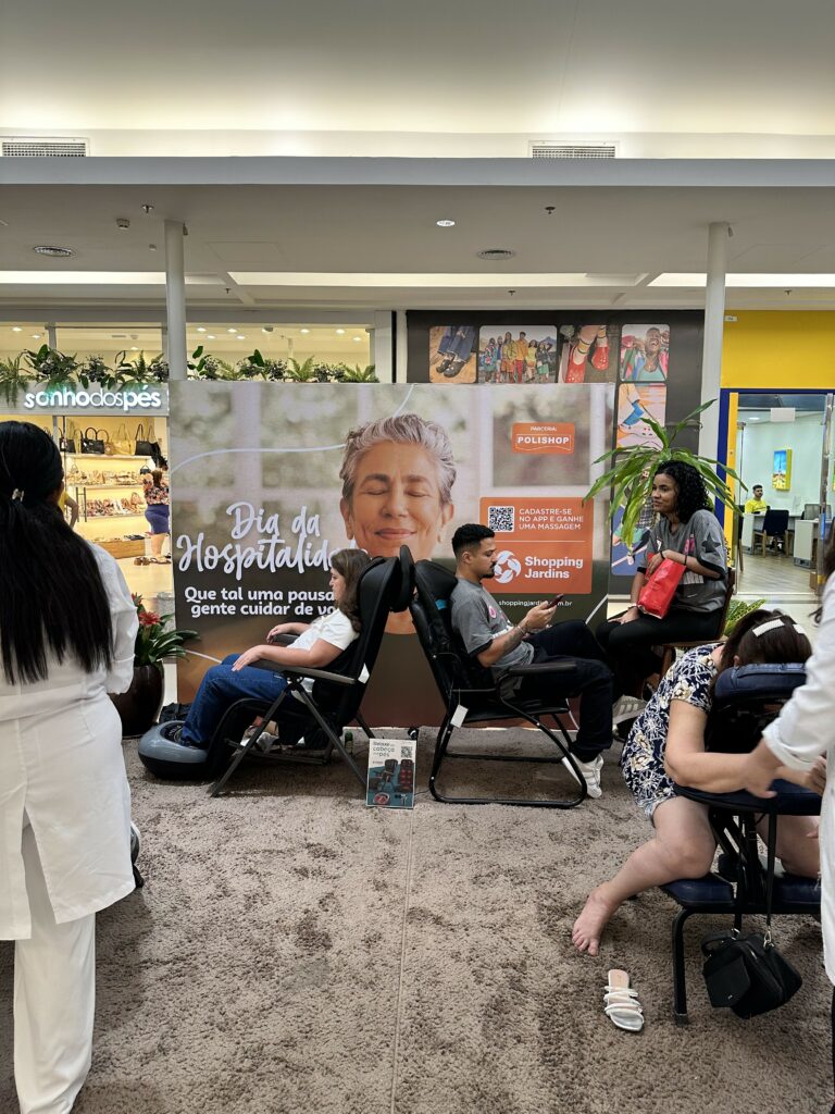 No dia 29/01, a loja participou de uma ação especial promovida pelo shopping na praça principal, com a presença de fisioterapeuta/massagista.
