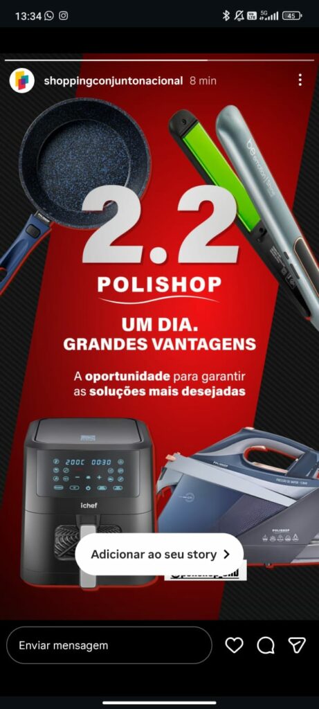 A loja contou com divulgação no Instagram do shopping, ampliando o alcance da ação e reforçando a presença da Polishop nas redes e no relacionamento com o público.