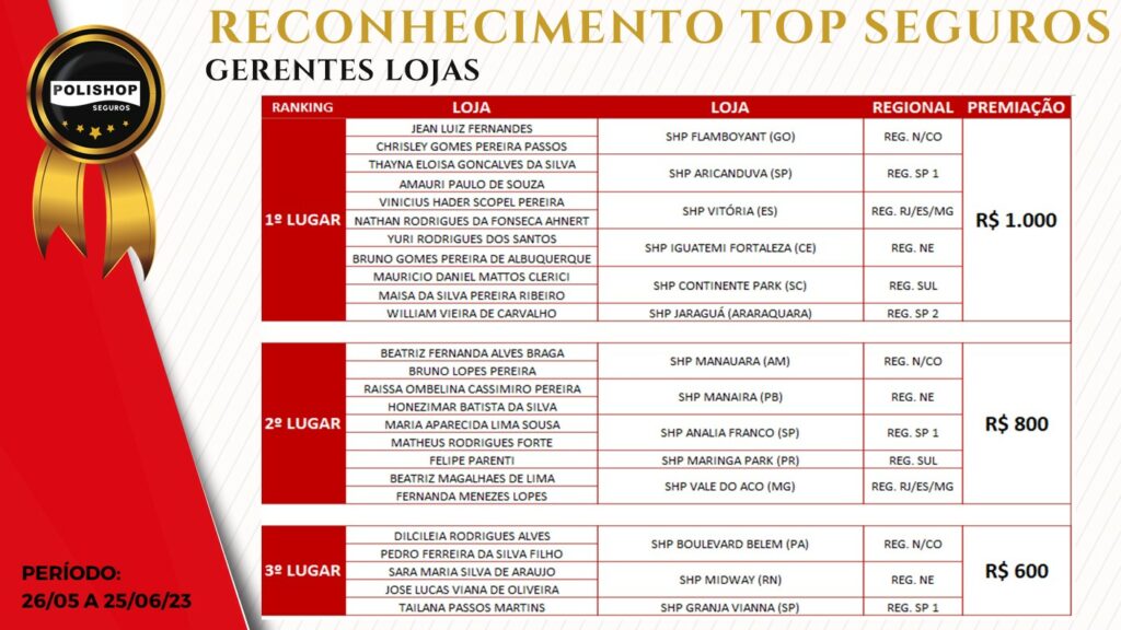 RECONHECIMENTO TOP – Junho 2023