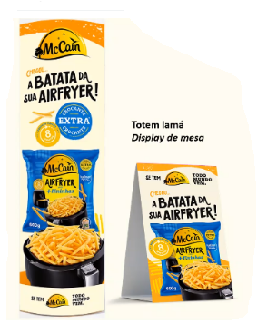Nos próximos dias as lojas participantes da ação Maccain irá receber em loja o totem e o display de mesa, a exposição deve acontecer da seguinte forma: