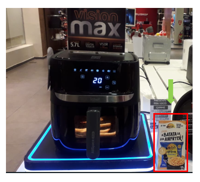 Lojas que possuem a mesa de airfryer bem próxima a entrada deve posicionar o totem lamá na entrada, conforme imagem.