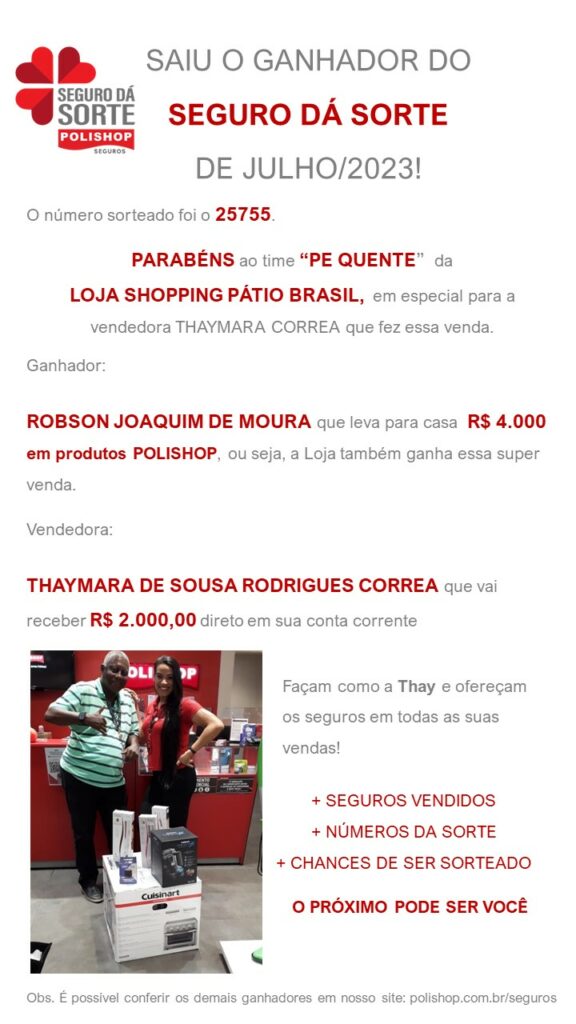 O envio da premiação será realizado na primeira quinzena de novembro.