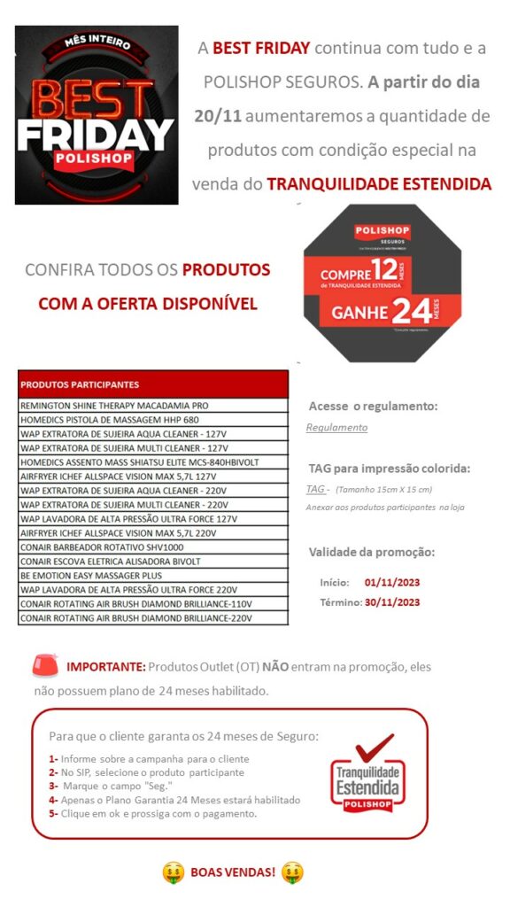 Best Friday + elegíveis para a oferta compre 12 ganhe 24 meses de Tranquilidade Estendida