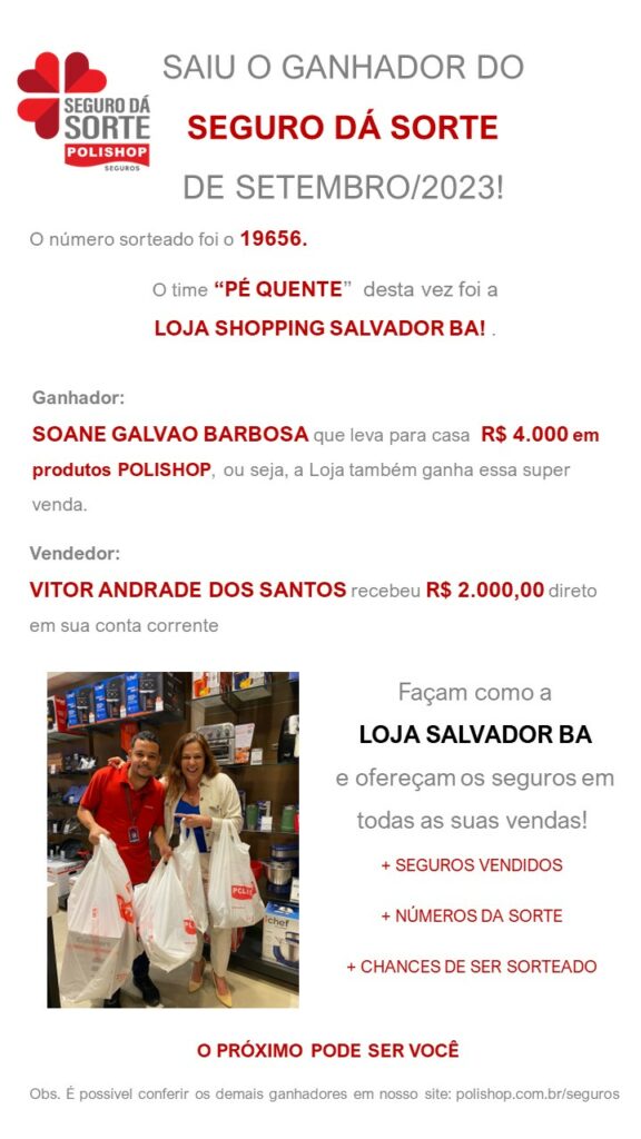 Confira Loja “PÉ QUENTE”, ganhadora do Seguro Dá Sorte de Setembro 2023