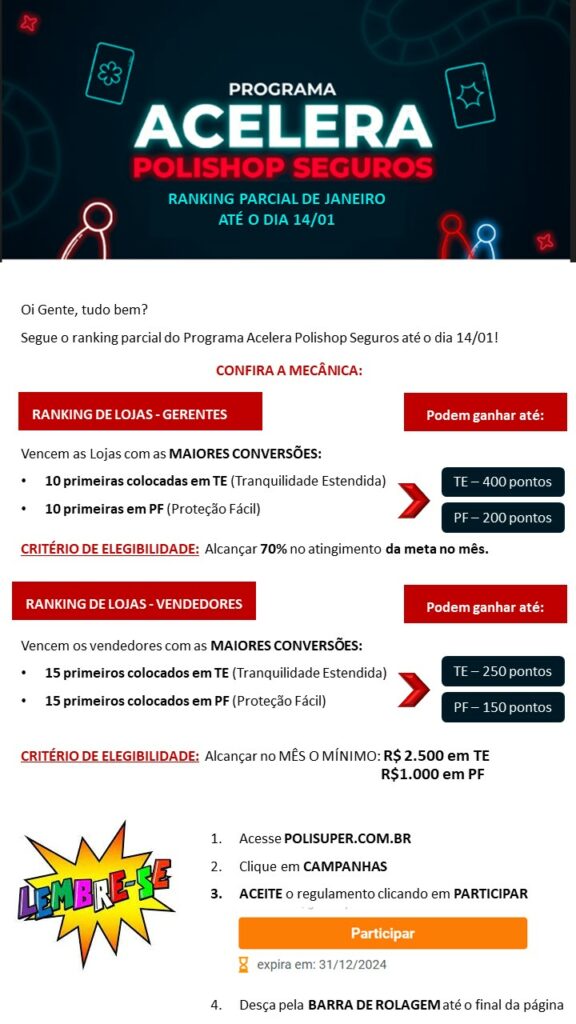 Importante: Os produtos que devem ser expostos são os combos da Poliweek com descontos a partir de 30% que estão disponíveis no Portal do Trade.