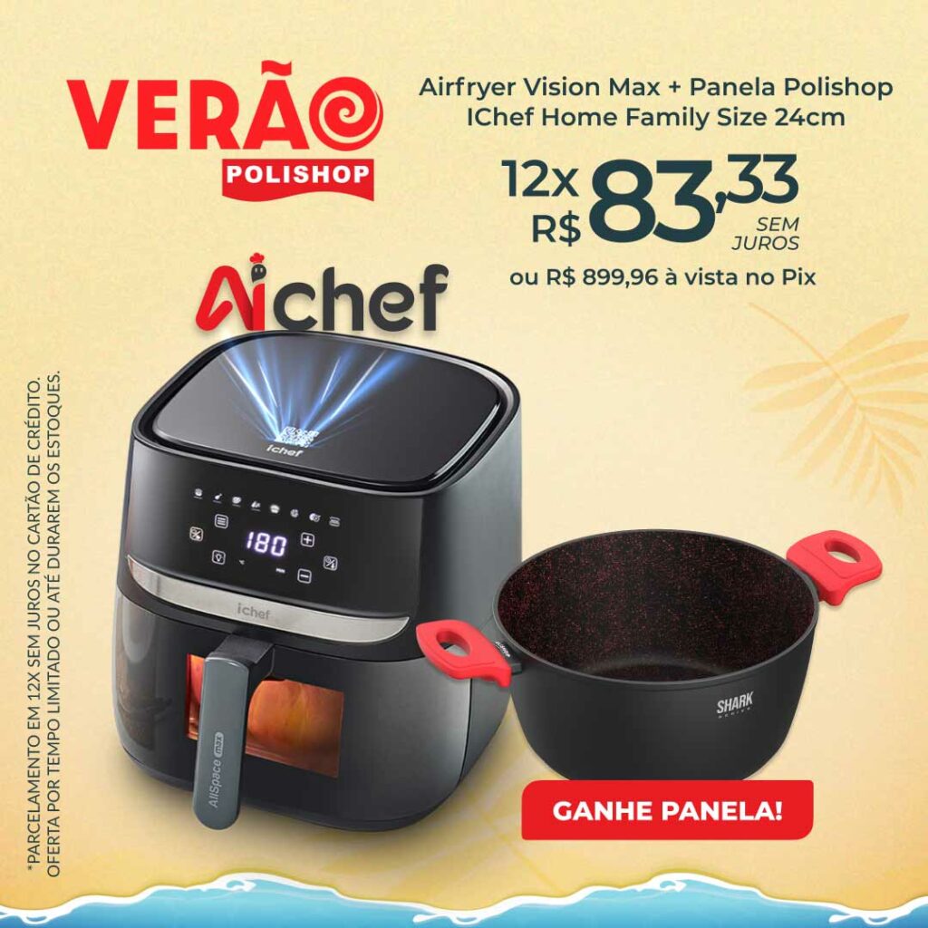 ✅ 17/01/24 A 21/01/24 – Fritadeira Elétrica Airfryer Vision Max Ichef Polishop 5,7L + Panela Polishop Ichef Home Family Size 24 cm;