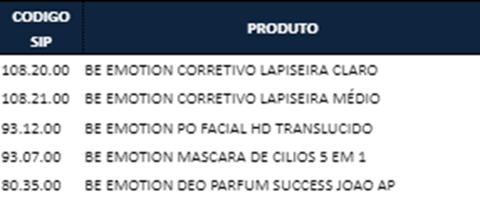Lojas de SP, RJ e MG, receberá nos próximos dias alguns produtos da Be Emotion com validade em 29/02/24, para presentear o cliente que comprar qualquer produto da Categoria de Beleza.