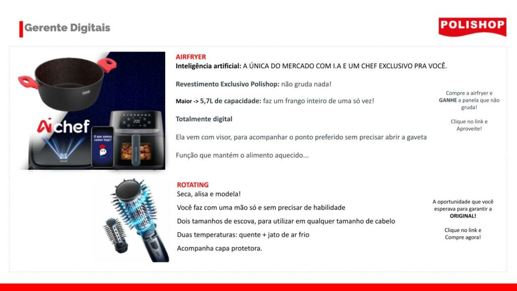 - 29/01 – Verão Polishop | últimos dias – Produto – (Vision Max, Panelas, Rotating, Duo Creative, Aqua Cleaner, ABMax, VB 2000).