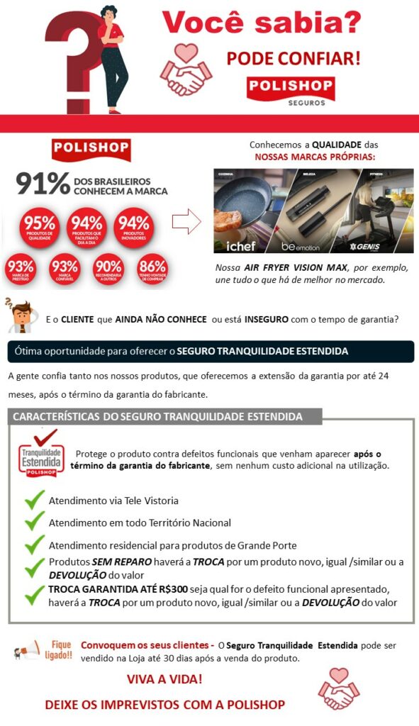 A Qualidade das Marcas Próprias Polishop! O cliente está na dúvida? Ofereça o Seguro Tranquilidade Estendida!