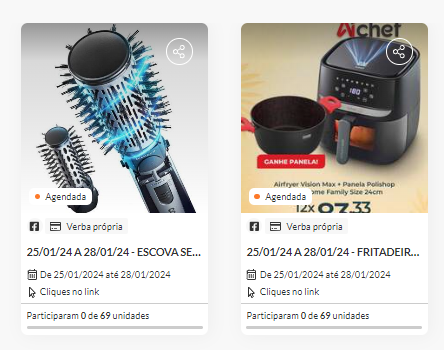 Airfryer Vision Max e Pistola Massageadora, o ritmo continua um pouco lento, porém, as campanhas são mais longas, ou seja, mais tempo vocês tem para vender!!