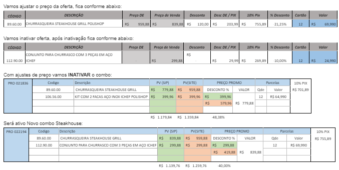 Todos os produto que for ÚLTIMA PEÇA DE PRODUTO DESABILITADO, sem estoque para reposição, está autorizado a venda com desconto de 20%, e para pagamento no PIX ele ganha mais 10% de desconto.