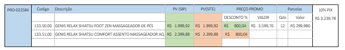 Sempre que houver uma venda da Pistola de Massagem Relax Therapist Genis Relax (SIP: 133.49.00), o cliente deve ser informando que o produto NÃO acompanha o ESTOJO PARA ARMAZENAMENTO, desta forma, é necessário que o cliente seja informado no momento da venda para evitarmos possíveis transtornos e cancelamentos.