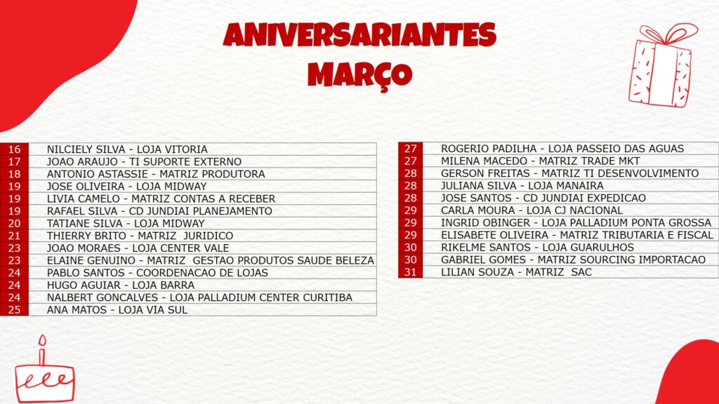 🎉🎈 Aniversariantes Março 🎈🎉
