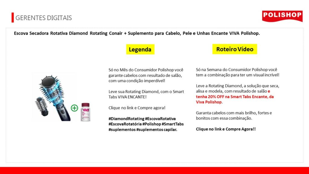 ✅ 21/03/24 A 24/03/24 – Escova Secadora Rotativa Diamond Rotating Conair + Suplemento para Cabelo, Pele e Unhas Encante VIVA Polishop.
