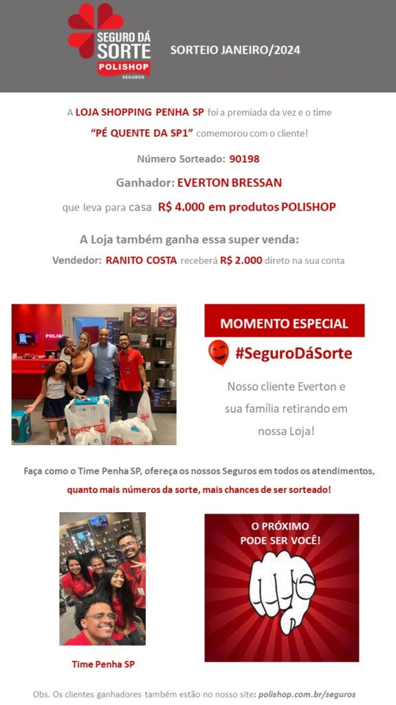 SÓ NA POLISHOP, se a loja atingir 100% da meta + 1 unidade vendida, o CAIXA receberá um PRÊMIO equivalente a 5% de comissão sobre a venda desses itens.