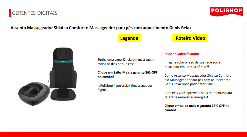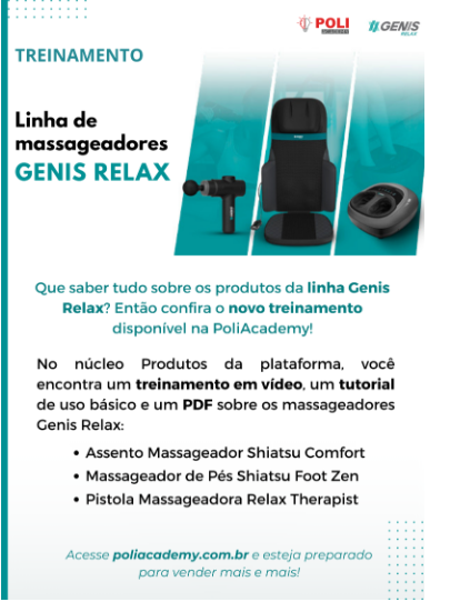 • 11/04 a 14/04 – Assento Massageador Shiatsu Comfort e Massageador para pés com aquecimento Genis Relax;
