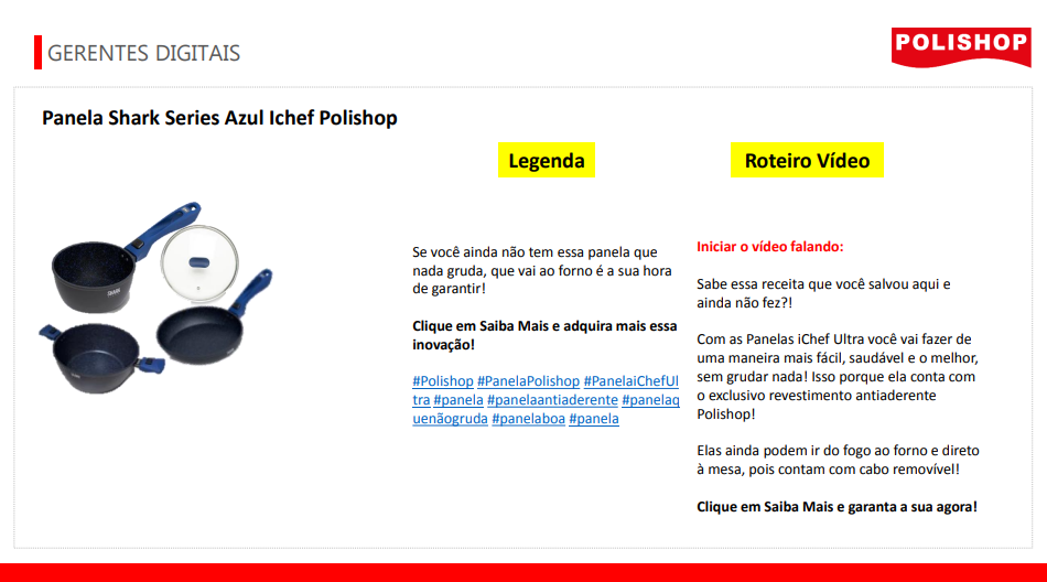 • 11/04 a 14/04 – Panela Shark Series Azul Ichef Polishop.