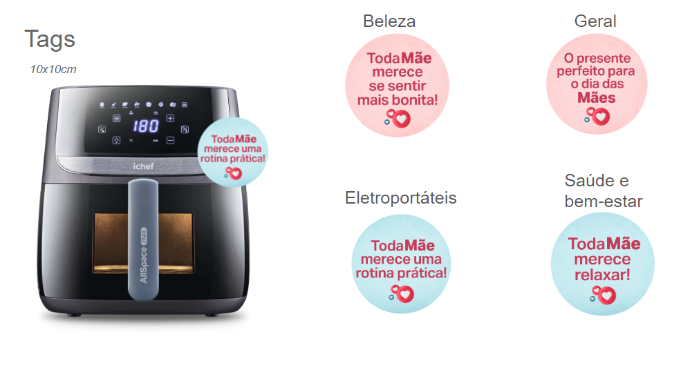 OBS: As tags NÃO devem ser fixadas em paredes, espelhos, vitrines, móveis e caixa.
