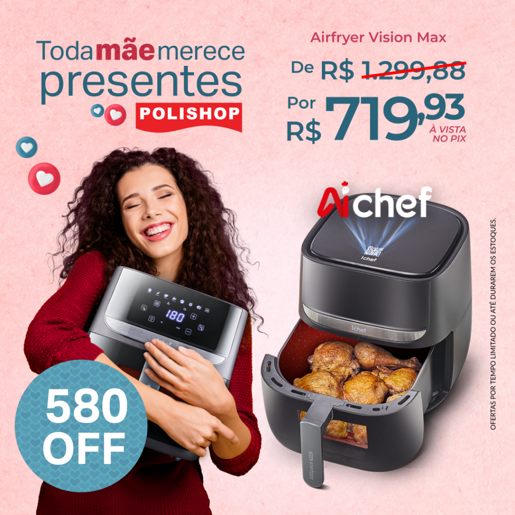 - ✅ 25/04 a 28/04 – Fritadeira Elétrica Airfryer Vision Max Ichef Polishop 5,7L.