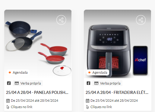 - ✅ 25/04 A 28/04 – Panelas Polishop iChef Ultra Shark Series Azul + Panelas Polishop Vermelha.