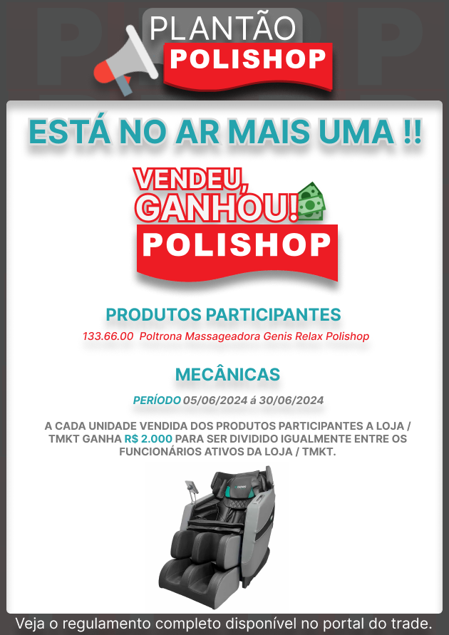 Vendeu Vendeu Poltrona Massageadora Genis Relax Polishop ganhou, vendeu Transformer Genis + Air climber ganhou, vendeu Categoria Casa & Cozinha ganhou!!!