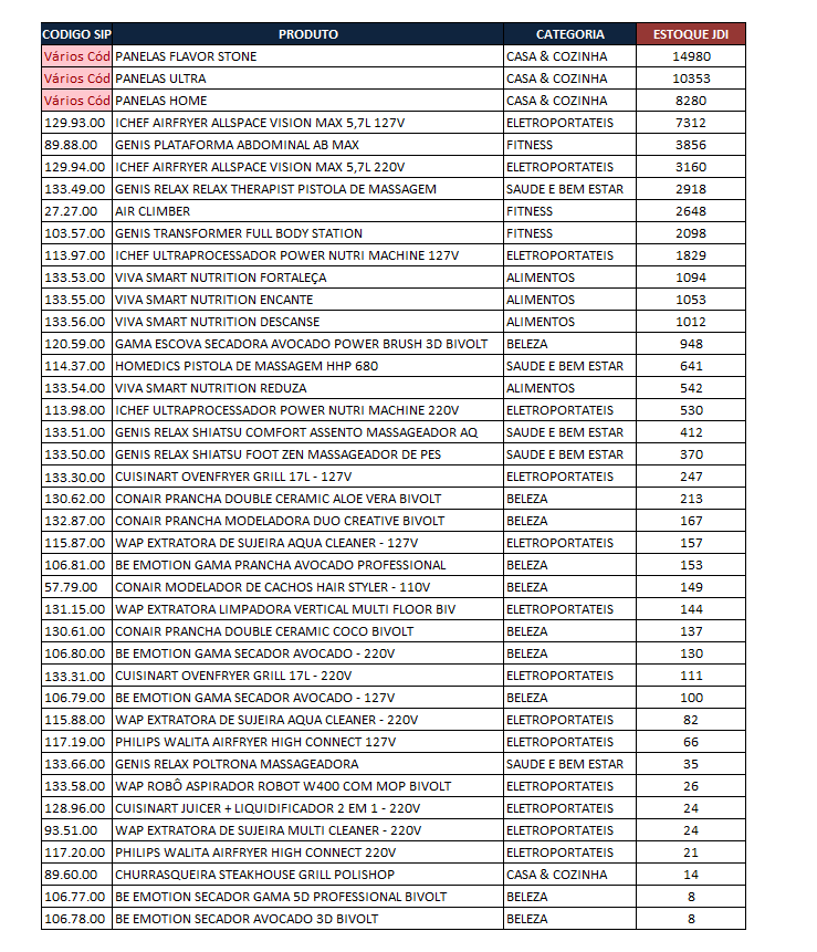 Clique aqui e verifique a planilha com os produtos vigentes no Portal do Trade