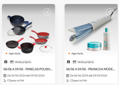 - ✅ 06/06 a 09/06 – Panelas Polishop;