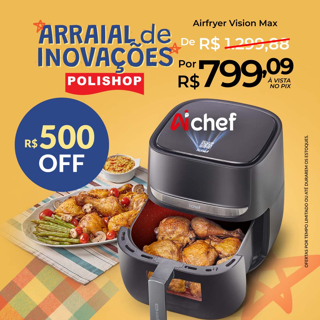- ✅ 20/06 a 23/06 – Fritadeira Elétrica Airfryer Vision Max Ichef Polishop 5,7L + Panela First Sauté Petit Vermelha 20cm Ichef Polishop.