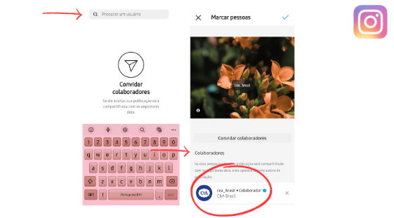 - Pesquise o nome do perfil que você quer incluir na sua collab e toque nele;