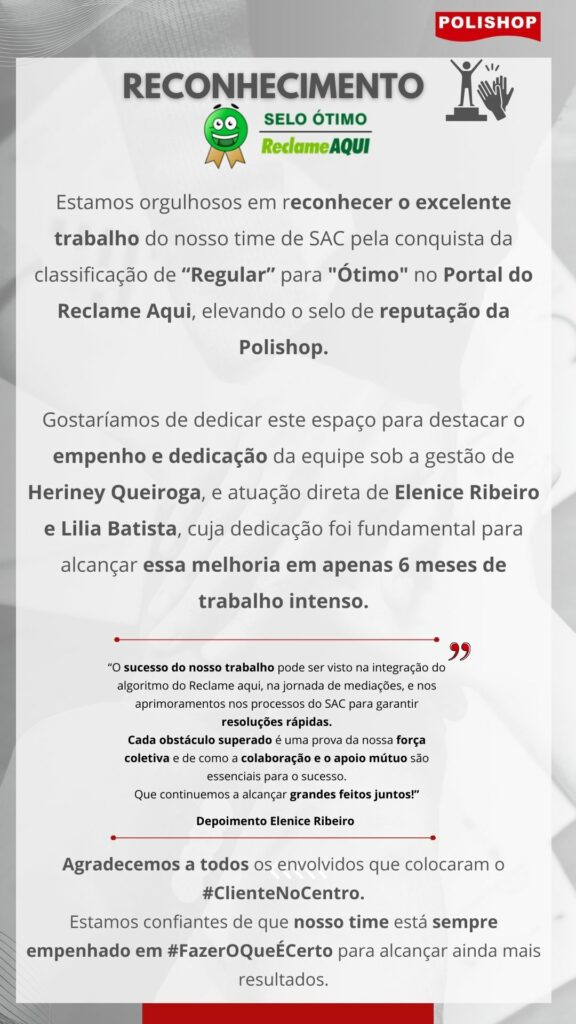 Conquista do “Selo Ótimo” do Reclame Aqui