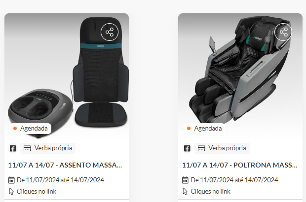 - ✅ 11/07 a 14/07 – Assento Massageador Shiatsu Comfort e Massageador para pés com aquecimento Genis Relax;
