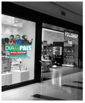Positivar o adesivo centralizado no centro da vitrine e na altura dos olhos, conforme imagem.