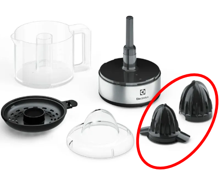 Caso o cliente questione a falta do acessório de espremer as laranjas, vocês devem informar que os acessórios vêm acoplados o espremedor pequeno encaixado na parte interna do grande, conforme vídeo abaixo: