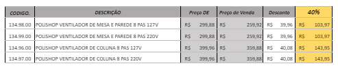 O enxoval da Campanha de Aniversário Polishop, deve ficar exposto nas lojas até o final do dia 30/09/2024 (segunda-feira) até o fechamento da loja. Garantir nesta data a remoção de todos os materiais: placa de mesa, bexigas, A4 e tags.