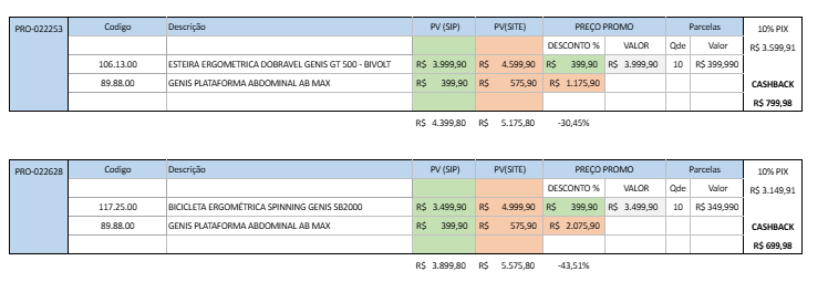 • 06/02 a 09/02 – Bicicleta Ergométrica Spinning SB 2000 Genis Polishop;