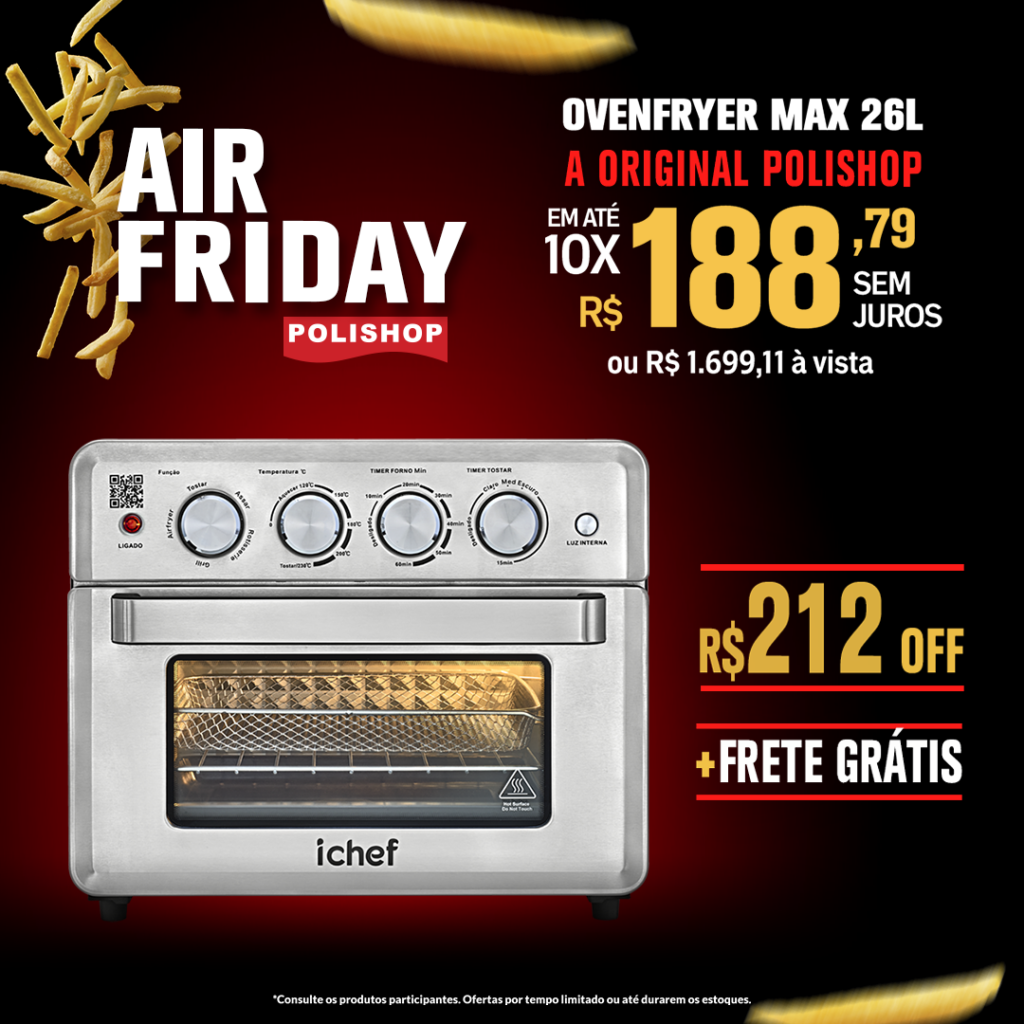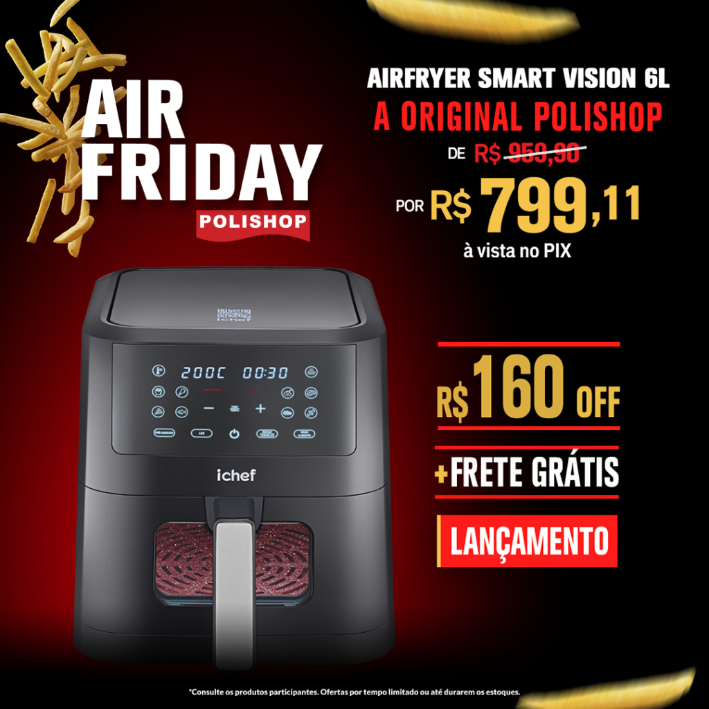 A AIRFRIDAY já começou, trazendo condições imperdíveis em toda a linha de AIRFRYERS ICHEF! Lembre-se de que essa campanha é válida até 05/03.