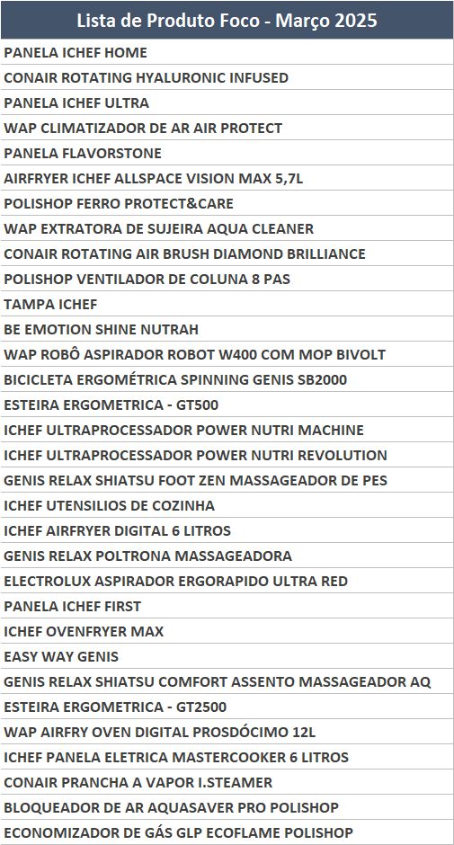 Lista de Produtos Foco Março