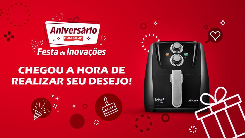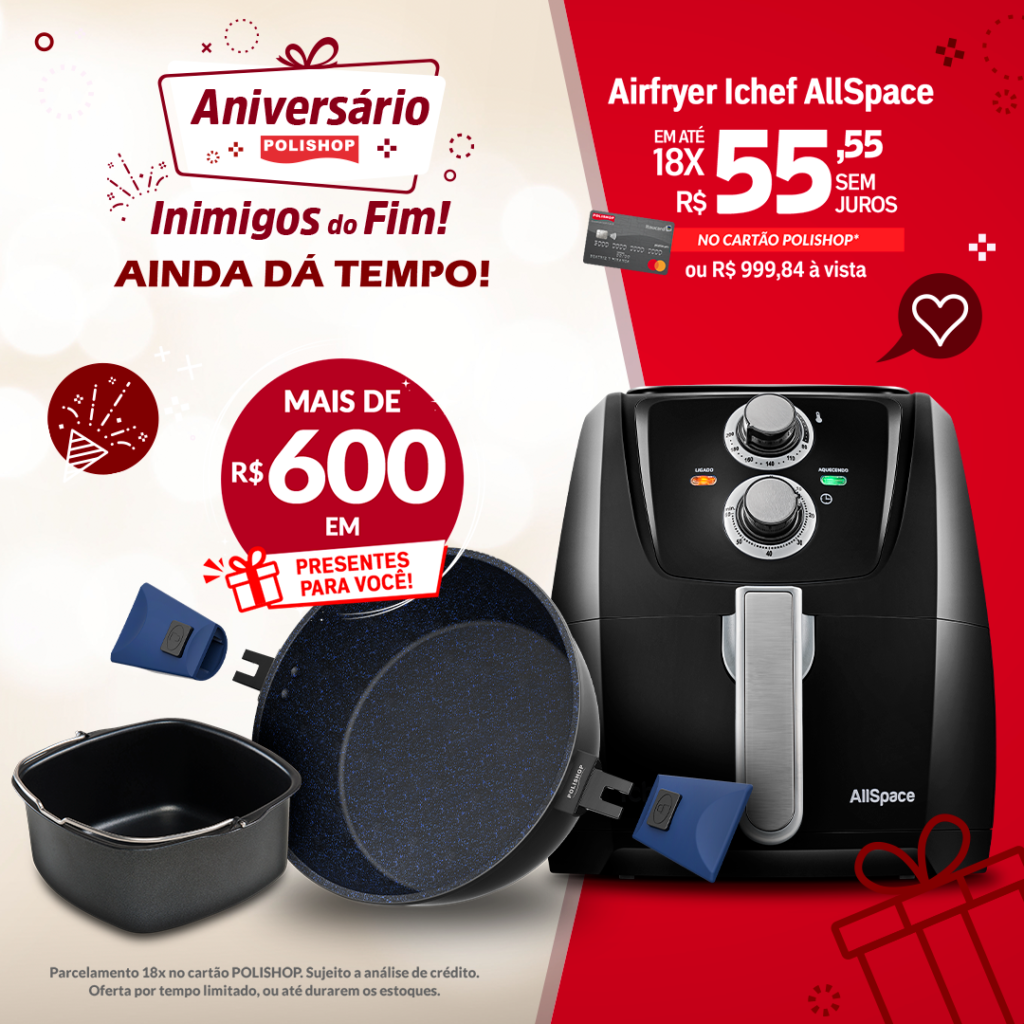 - Ação Fazer o Bem, a airfryer usada do cliente tem um desconto de R$250,00, na compra de uma Airfryer Original Polishop.