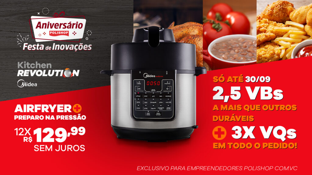 No mês de aniversário da POLISHOP o Empreendedor tem bonificação diferenciada na Kitchen Revolution Midea!