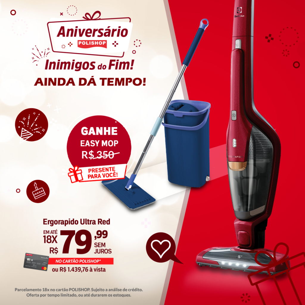 Reta final da Campanha de Aniversário Polishop, aproveitem para focar nas vendas das nossas ativações, ofertas e últimos lançamentos.