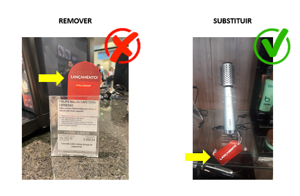 Substituímos o pirulito de lançamentos pela tag. Desta forma, pedimos a gentileza que removam dos preçários a arte anterior e subsitua pela nova tag, conforme imagem abaixo: