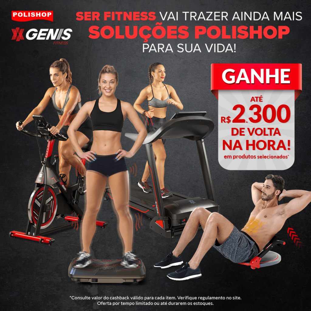 1. E vamos com muito foco em 20% de Cashback fitness, onde nossos clientes podem ter até R$ 2300,00 de volta em produtos Polishop, ainda temos produtos com valores EM OFERTA que também adquirem cashback do valor final!