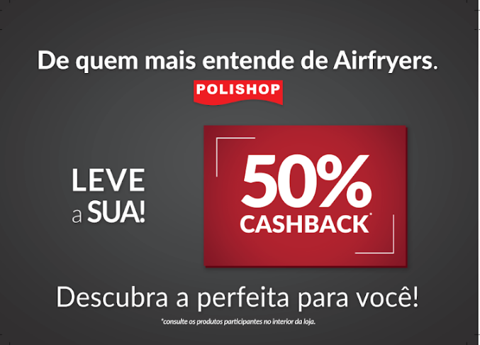 Vale reforçar que a oferta de Cashback 50% da Airfryer ficará no ar somente até 31/08.