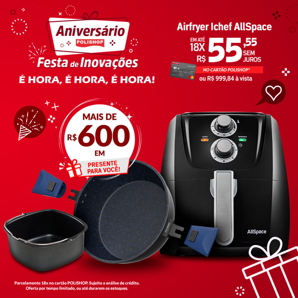 3. Oferta COMBO AIRFRYER VINDO AI a Polishop faz aniversário mas são nossos clientes que vão GANHAR MAIS DE R$ 600,00 em presentes!