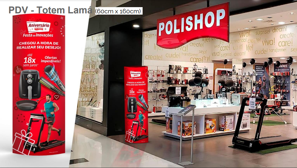 Os totens Lamás, devem ser colocados na porta da loja para chamar a atenção dos clientes que ali passam