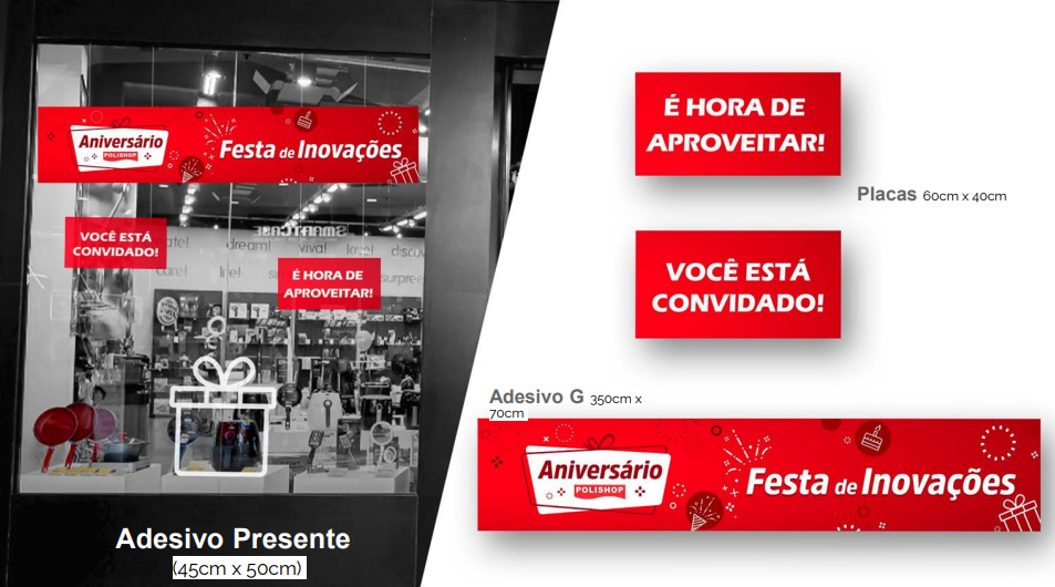 Apenas algumas lojas receberão, mas os móbiles devem ser espalhados na loja, uma observação muito importante é, NÃO COMPREM BEXIGAS, não está autorizado o uso em lojas.