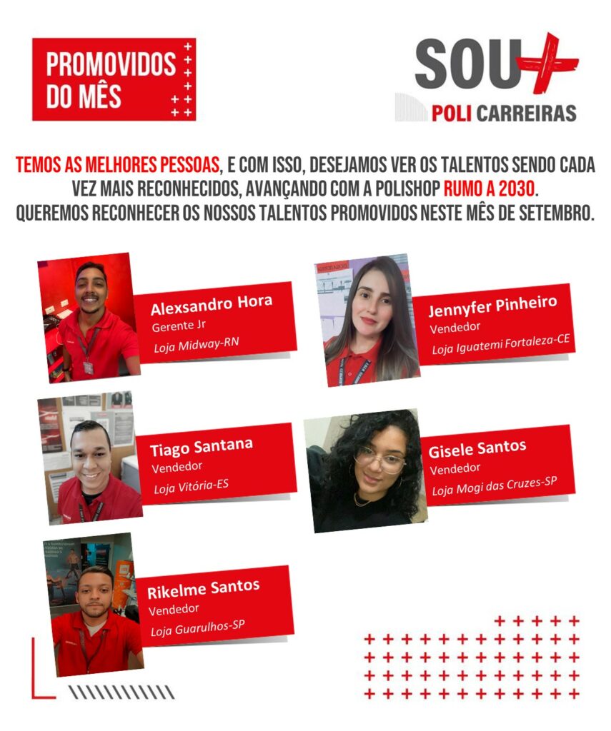 Temos as melhores pessoas, e com isso, desejamos ver os talentos sendo cada vez mais reconhecidos, avançando com a Polishop RUMO A 2030.