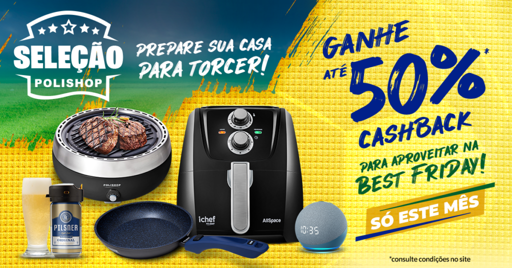 Prepare os nossos clientes pra torcer junto com a gente com super Cashback de até 50%* nas nossas compras